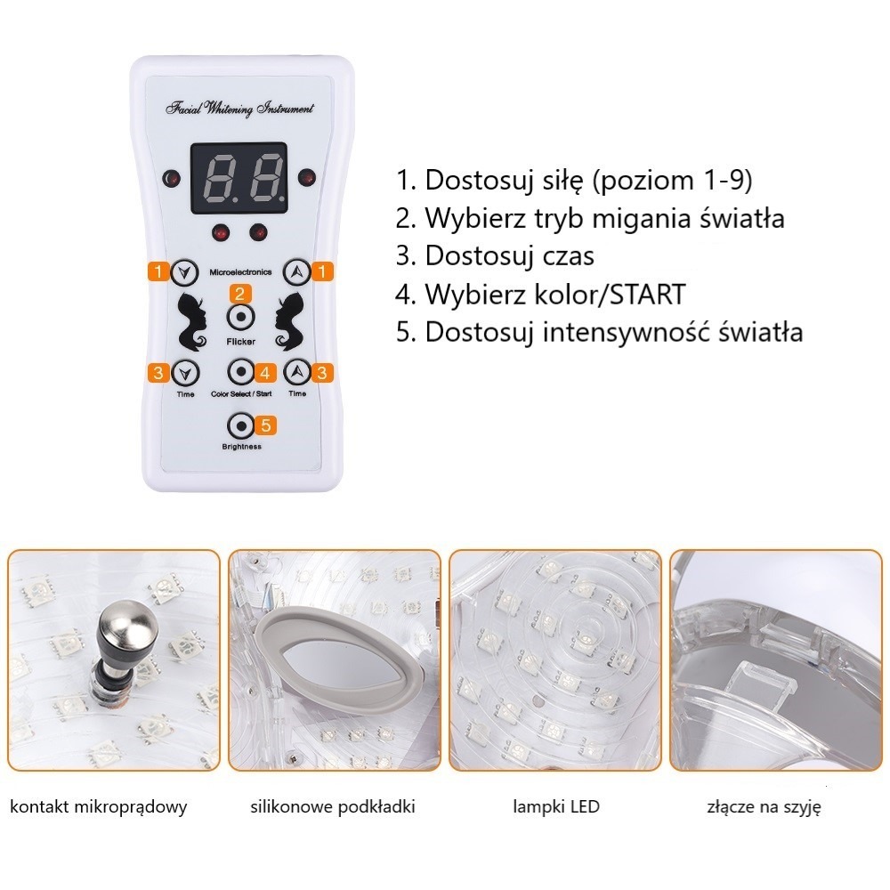 Світлодіодна лампа Beauty Mask має 7 основних функцій: