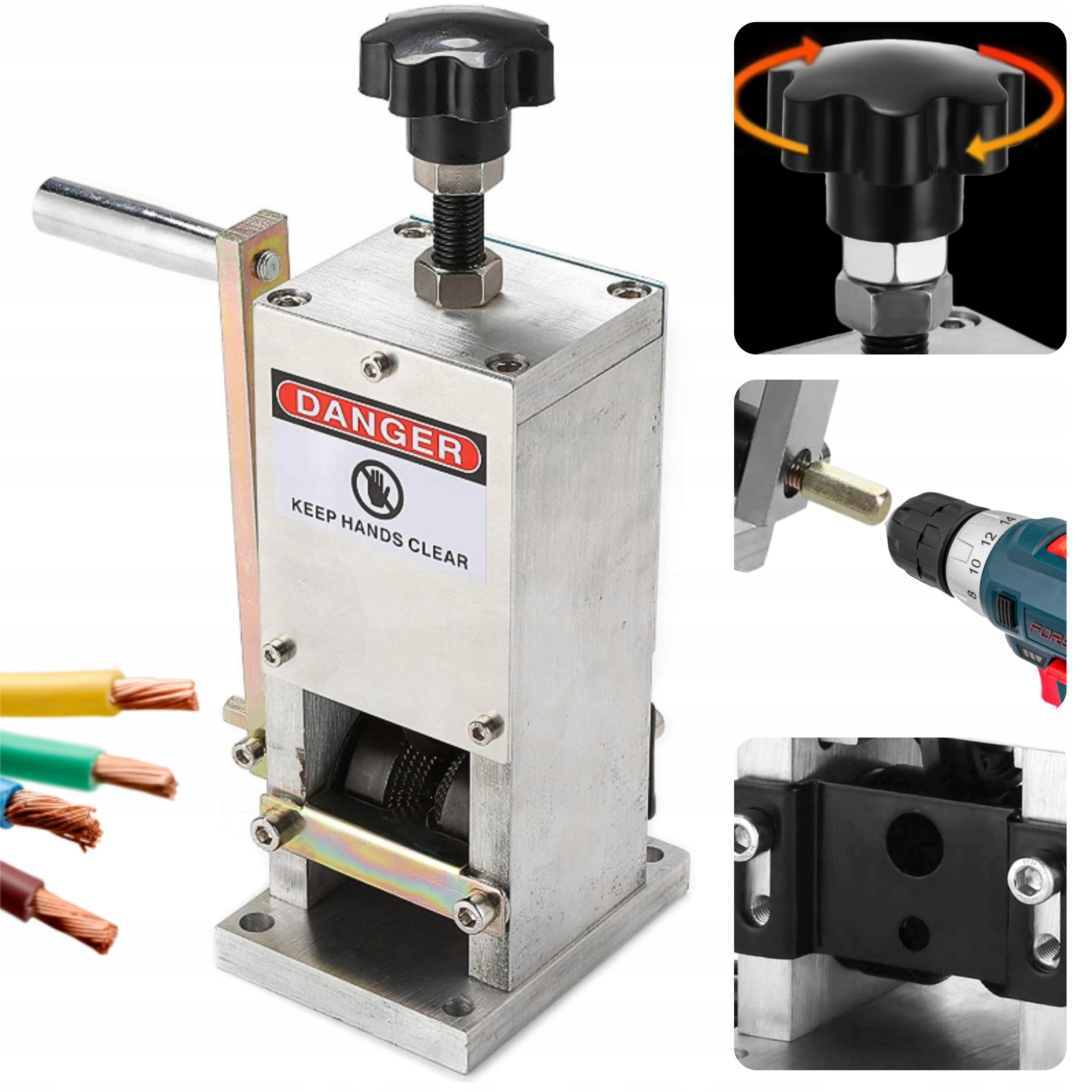 Пристрій для легкої ізоляції кабелів товщиною 1,5 до 25 мм , що підходить для домашнього або промислового використання.