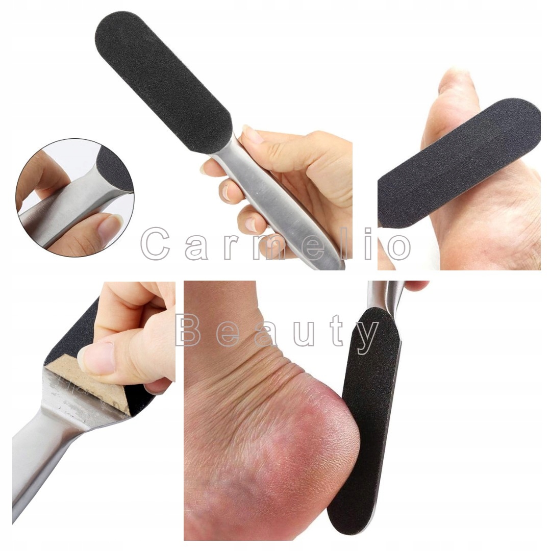 Виготовлена з високоякісної нержавіючої сталі, двостороння з можливістю заміни абразивної поверхні (різної градації), міцна конструкція та ергономічна ручка забезпечують максимальний комфорт при видаленні затверділого і ороговілого епідермісу з п'ят і вирівнюванні поверхні стоп.