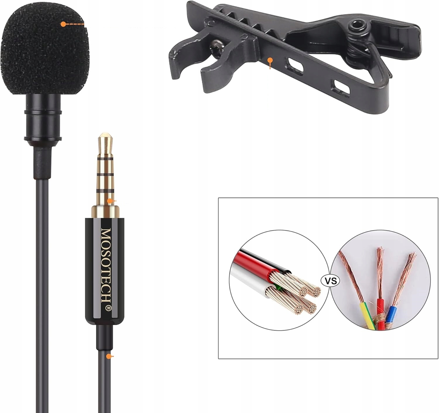 Цінний пакет: включений з лавальським, вітряним мікрофоном, 3,5 мм адаптера ПК. Загальна довжина 3,5 м дозволяє рухатися без відключення мікрофона.