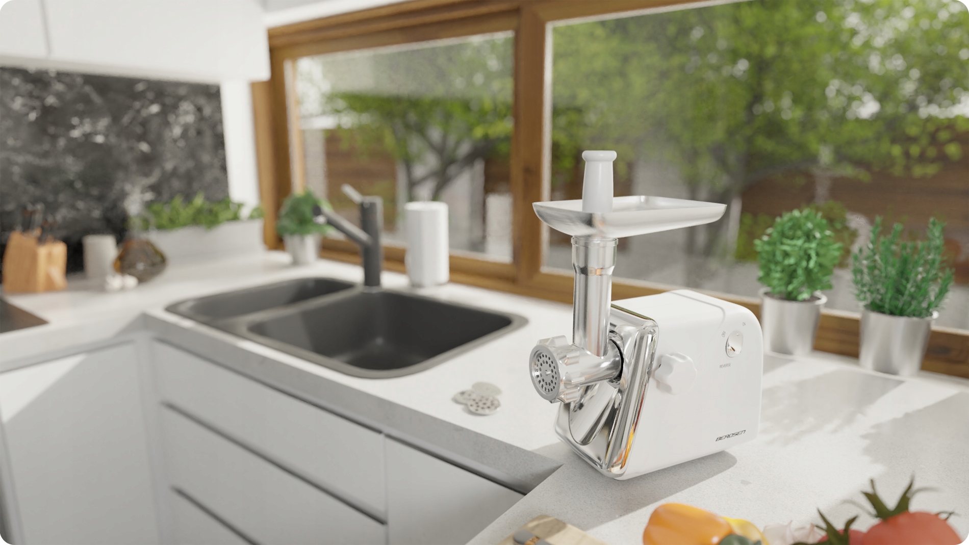 З продуктивністю 1,2 кг м'яса за хвилину ви зможете швидко приготувати страву для всієї родини. Незалежно від того, чи будете ви молоти м'ясо, готувати томатний сік чи робити домашні ковбаски - все буде готово в одну мить!