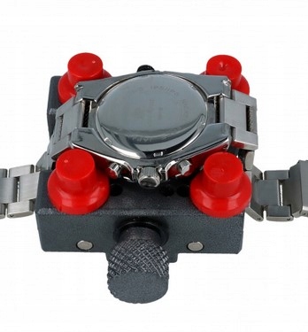 Тримач для кріплення корпусів годинників із кришкою, що загвинчується, щоб відкрити. Виріб затискається в лещата. Відстань регулюється в діапазоні 14 - 65 мм за допомогою регульованих пластикових блоків і гвинта.