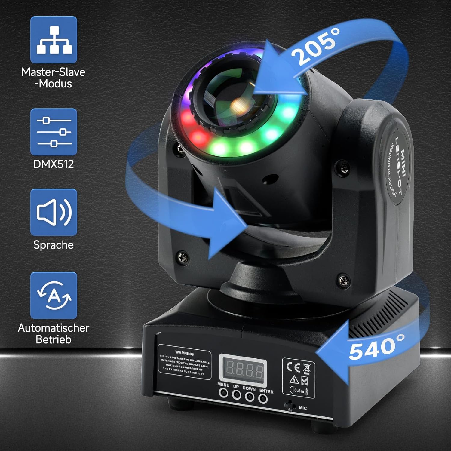 - Динамічні досвіди світла: Зробіть свою подію більш привабливою завдяки нашій рухомої світлодіодної голови з силою 100 Вт. Її компактна, і в той же час сильна конструкція забезпечує гіпнотизуючі освітлювальні ефекти, завдяки якому він ідеально підходить для ді -джеїв, весіль, подій та стадій. Освітлення: Завдяки 8 різних конструкцій, 8 одному кольорах та 6 подвійних кольорів, включаючи напівзроблені ефекти та оборот, цей освітлювальний пристосування пропонує необмежені можливості. Контролюйте швидкість зміни освітлення без зусиль, покращуючи настрій відповідно до власних уподобань. 4 Незалежно від того, чи є ви професійним ді -джеєм чи організатором подій, ця лампа проста у використанні та гарантує захоплююче світло -шоу щоразу.