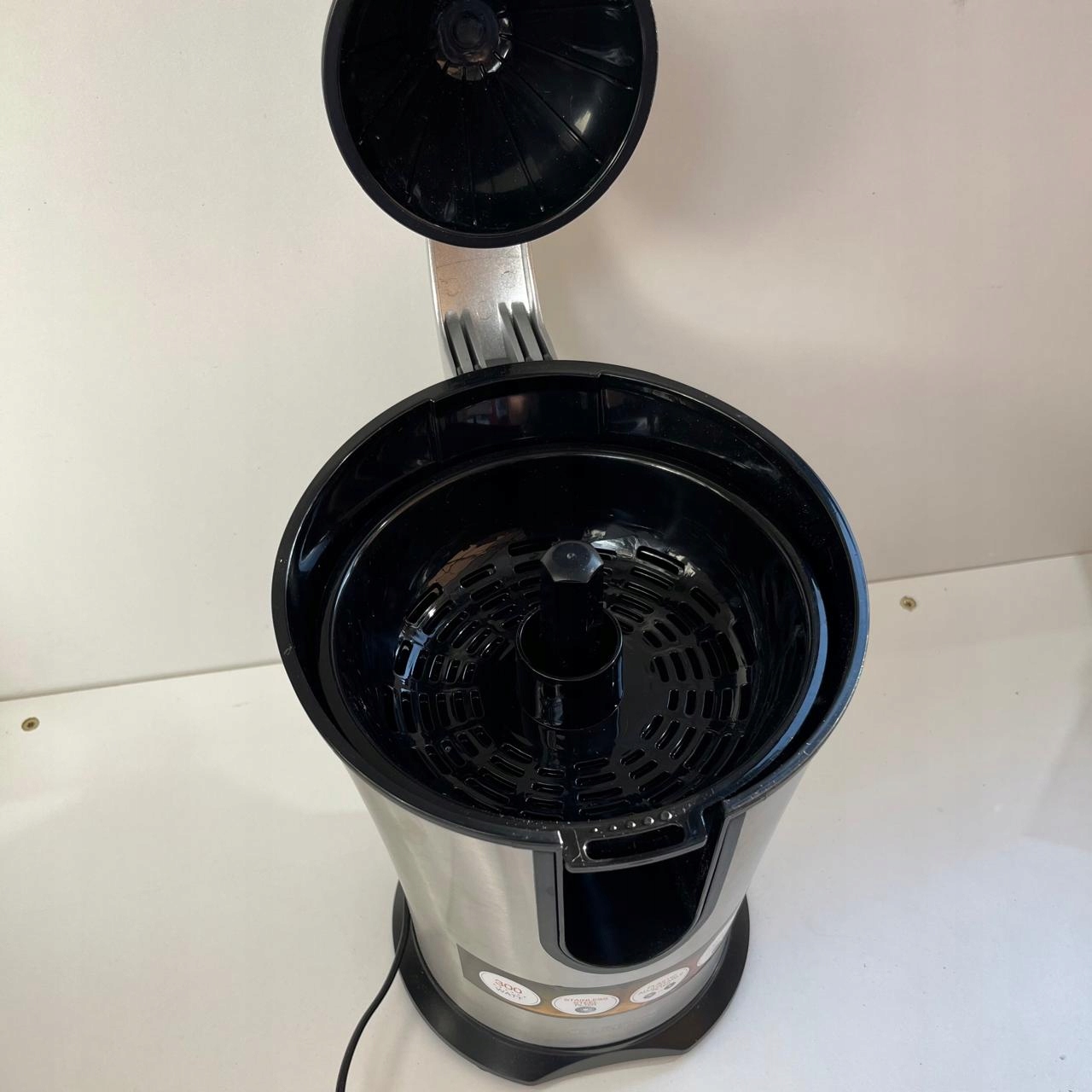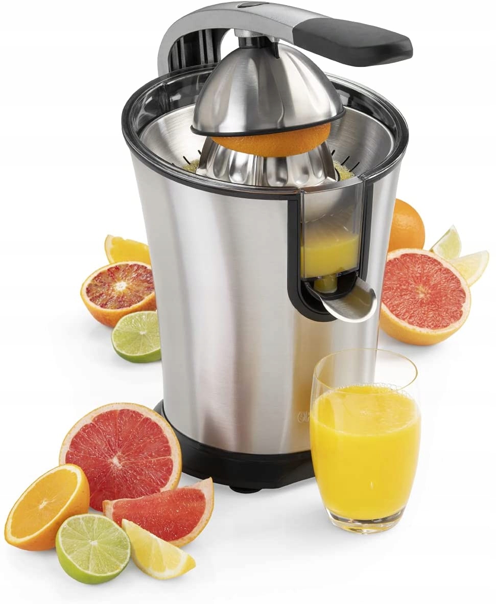 - Завдяки міцній нержавіючій сталі та потужності 300 Вт соковижималка підходить для всіх типів цитрусових - маленьких і великих