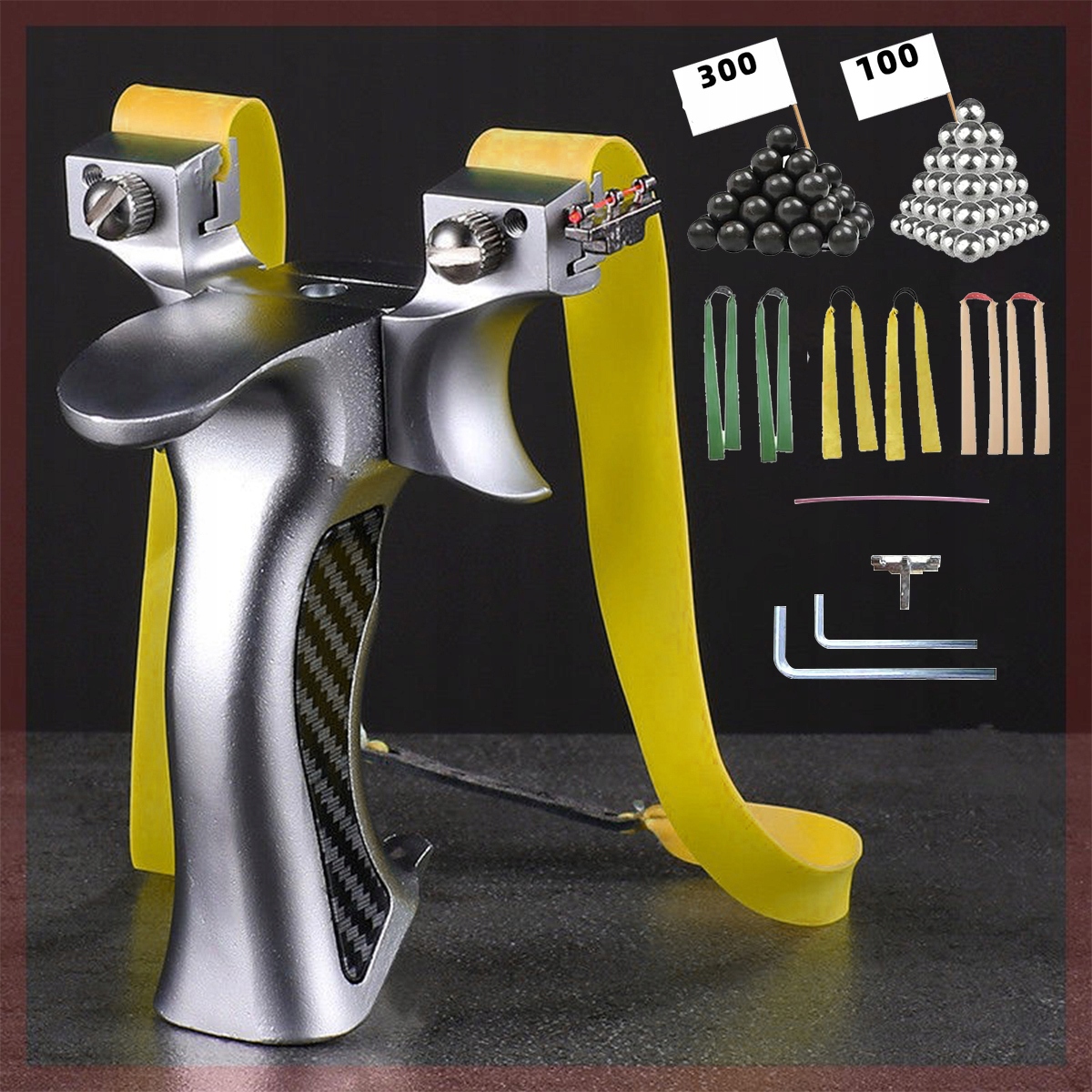 �Рогатка YOUKUKE Slingshot Pro для полювання Спортивна пряма рогатка з ручкою з цинкового сплаву на відкритому повітрі з 6 гумками + 300 глиняними кульками + 100 сталевими кульками�
