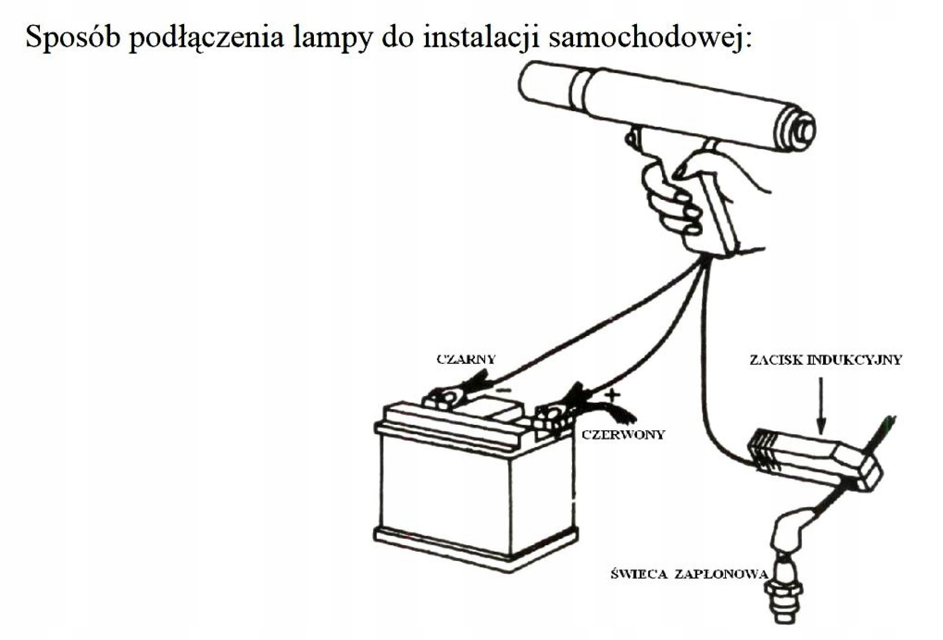 6. Під’єднайте лампу до регулятора (чорна клема – до негативного полюса, червона – до позитивного) і помістіть позитивний індукційний датчик на кабель високої напруги першого циліндра. Стрілка на корпусі датчика має вказувати на свічку запалювання.