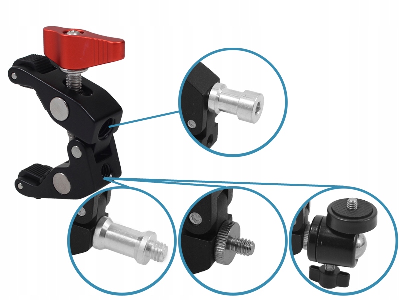 Можливість використання цапф, переходів і кульових головок для збільшення можливостей краба (аксесуари на фото не є частиною пропозиції).