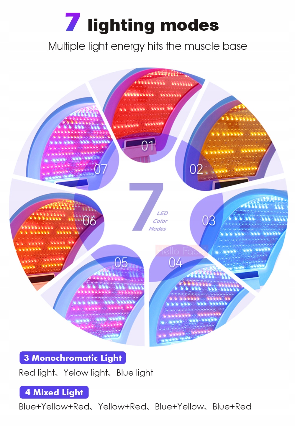 - Універсальна дія: світлодіодна маска Hello Face використовує потужність світлової терапії для вирішення широкого спектру проблем зі шкірою – від вугрів до зморшок, до в’ялості шкіри та почервоніння.