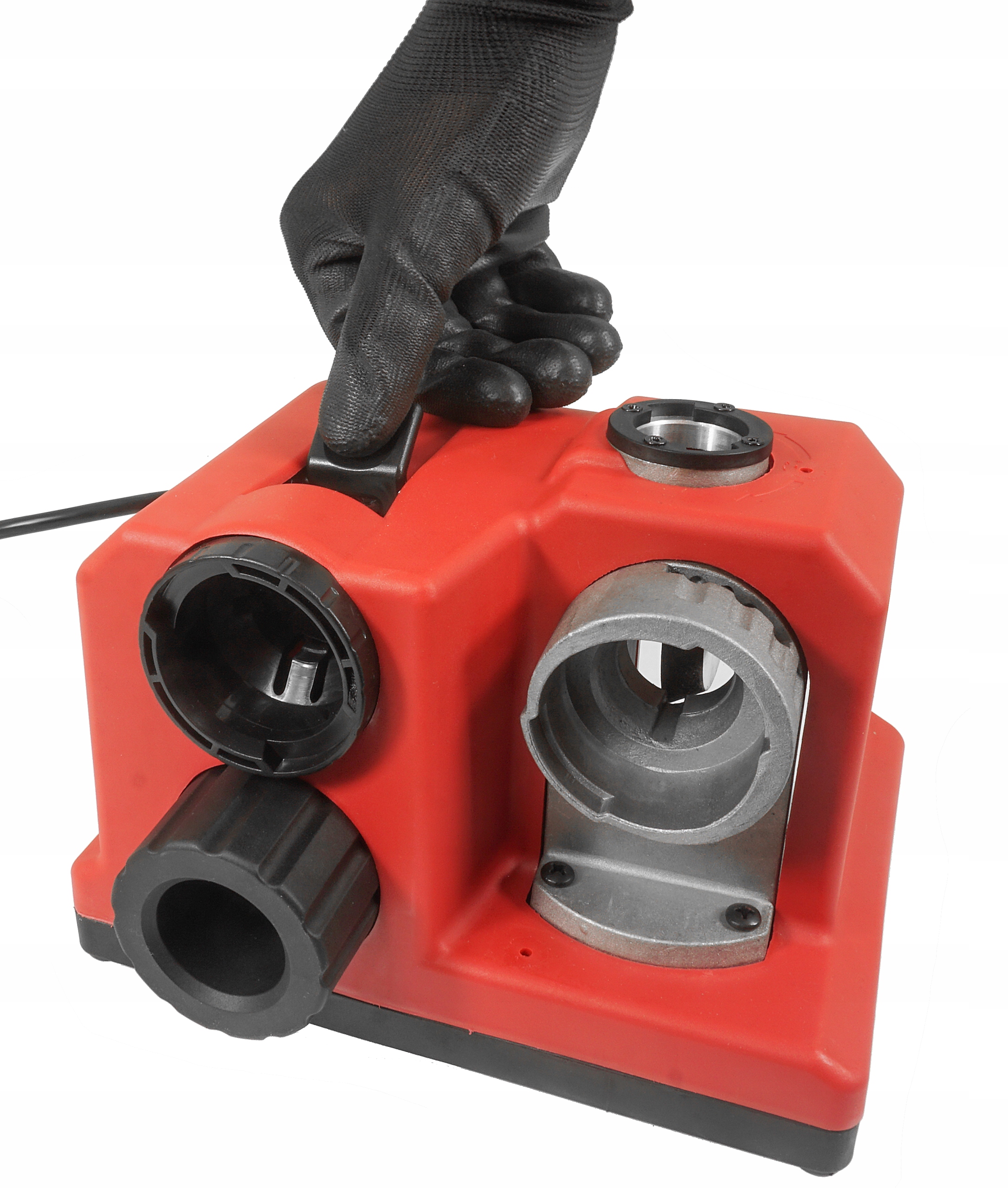 2. Гніздо для введення голови та регулювання відповідного положення шліфування. Гніздо (бічний шліфувальний отвір) з позначеним крутним моментом для голови, щоб точно загострювати дві сторони свердла. Гніздо (верхній шліфувальний отвір) з позначеним крутним моментом для голови, щоб точно вирівняти свердловину з обох боків. Металевий і пильний контейнер утворився при стиранні каменю шліфування з буровим матеріалом. Гумові покриви, що покривають шліфувальні отвори.