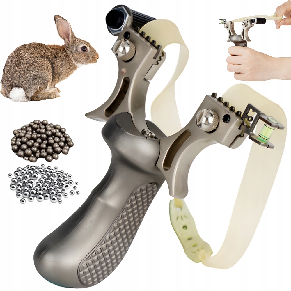 Професійна мисливська рогатка використовує високояскраві лазерні маркери та рівень для корекції положення руки, що дозволяє точно стріляти з відстані до 50 метрів.