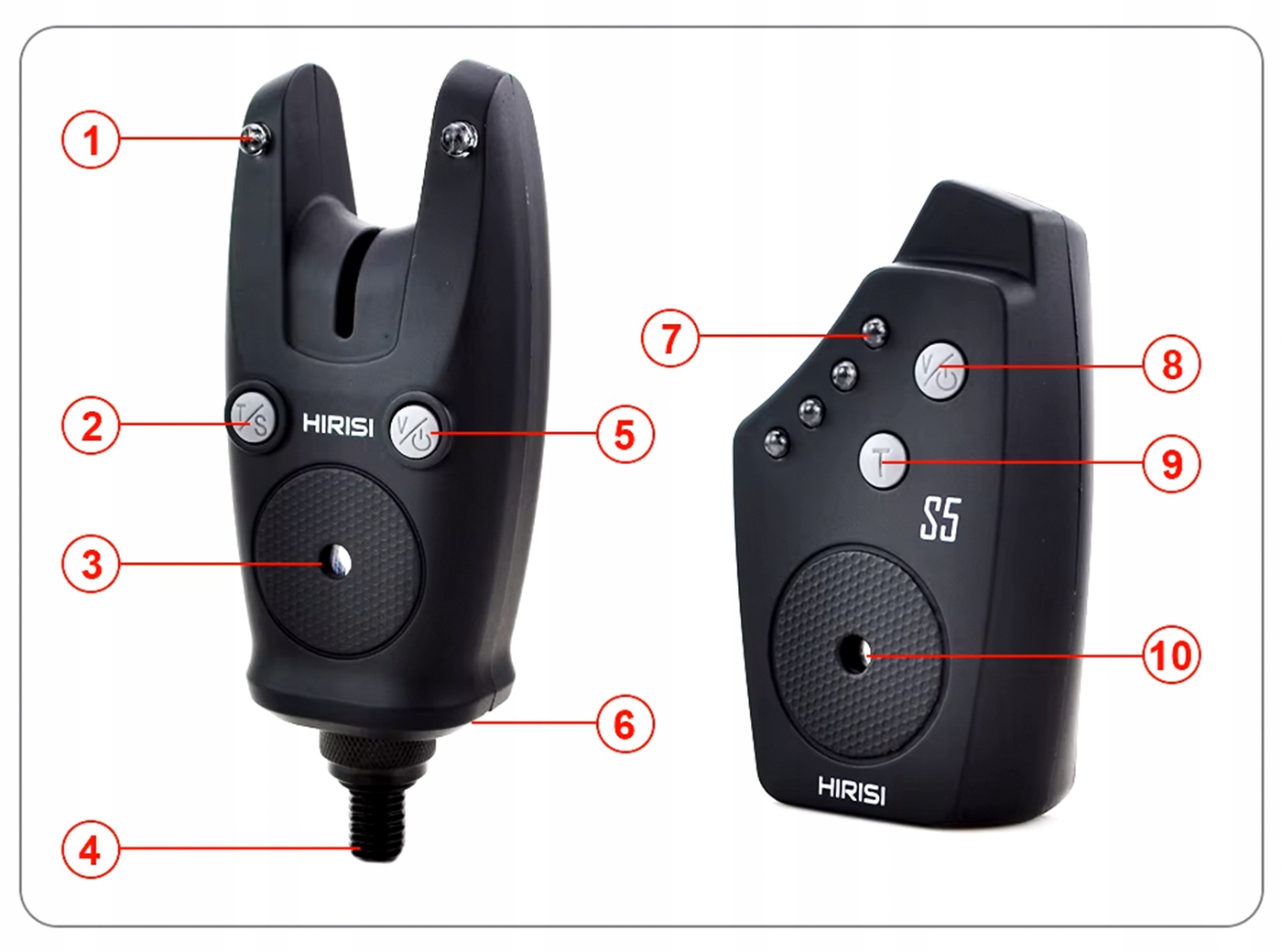 Цей бездротовий набір риболовних сигналів є незамінним елементом обладнання кожного рибалки. 4 Функція регулювання параметрів дозволяє регулювати пристрій на індивідуальні потреби , що збільшує комфорт та ефективність риболовлі. Барвисті світлодіоди забезпечують легке розпізнавання, з якого надходить сигнал тривоги, що надзвичайно корисно під час риболовлі з багатьма стрижнями.