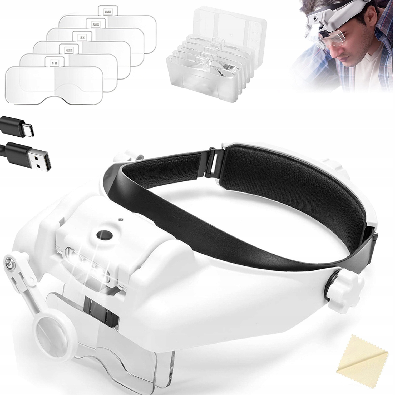 ПРОФЕСІЙНЕ ЗБІЛЬШУВАННЯ НА ГОЛОВІ З 6 ЛІНЗАМИ І СВІТЛОДІОДОМ