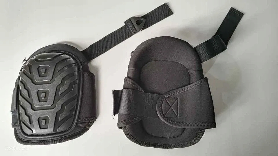 Композитний матеріал із пластикової оболонки з ПВХ, тканини Оксфорд, просоченої тканини та підкладки з гелю EPE+, м’яка гелева контактна поверхня з внутрішньої сторони є зручною для шкіри, яка може ефективно амортизувати тиск коліна, протистояти ударам і уникати. пошкодження від тертя між колінами та землею під час роботи.