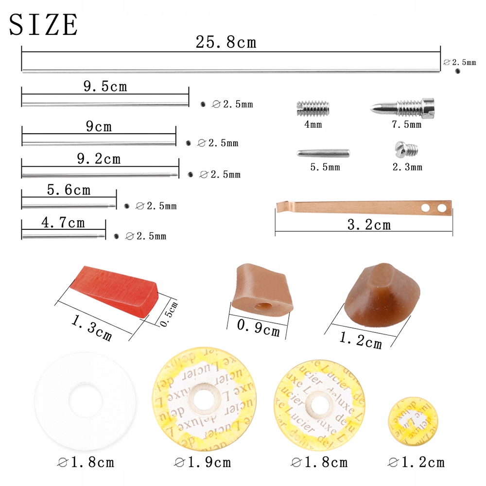 - Включаючи вали+гвинти+ущільнювачі+шайби+штифти+флейта, всього 10 видів аксесуарів для ремонту флейт.