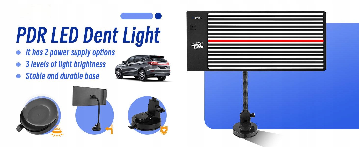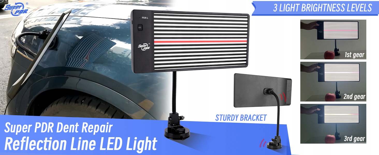 - Регульована яскравість: завдяки трьом регульованим рівням яскравості ви можете легко змінювати налаштування, щоб отримати ідеальне освітлення для завдань з ремонту вм’ятин, забезпечуючи оптимальну видимість і точність.