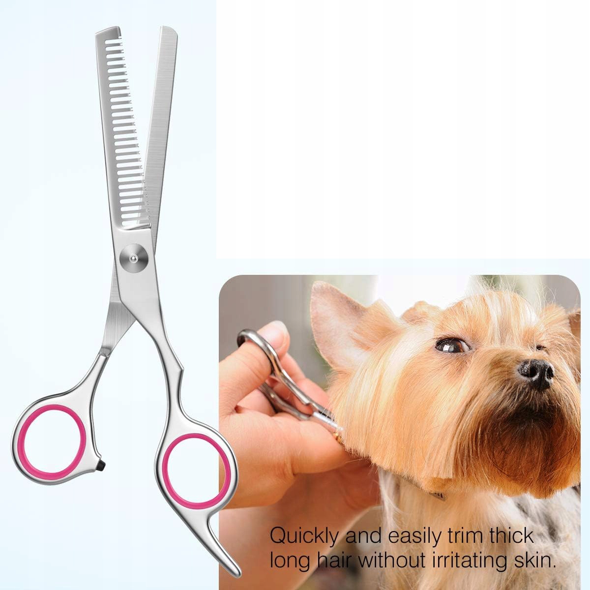 Гумова подушечка на ручці ножиць – це заспокійлива подушечка, яка не налякає вашого улюбленця так сильно, як електричні машинки для стрижки.