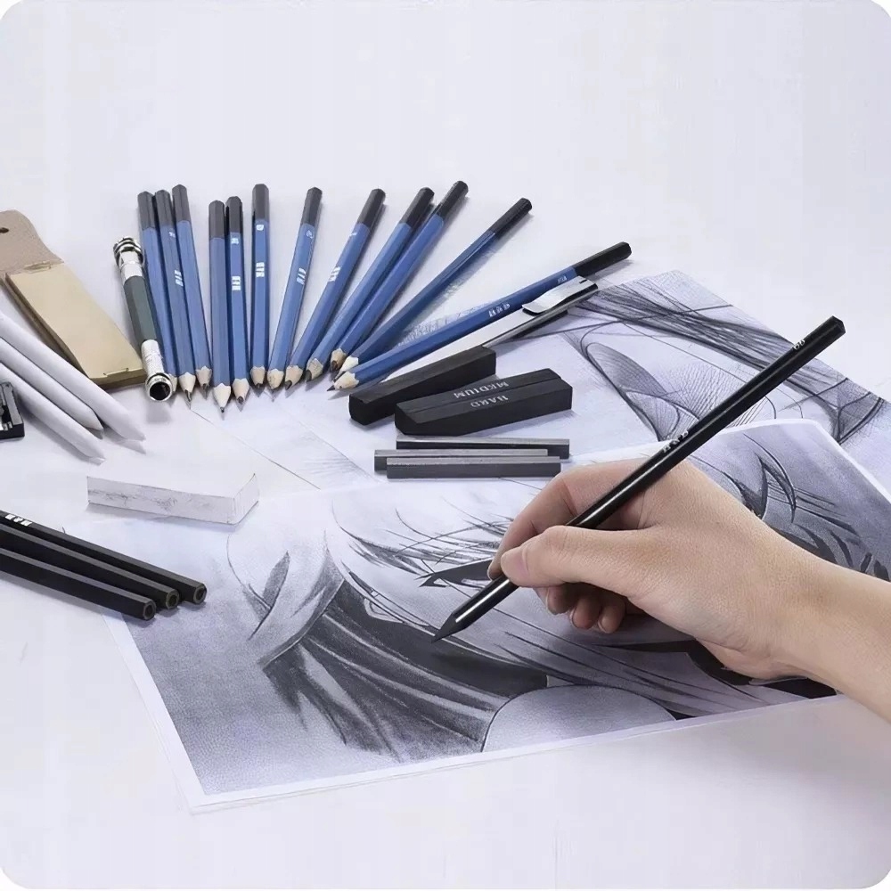 ✍ ️ олівці - позначені числами або літерами, які зазвичай називають ступенем твердості. Лист B означає, що вони м'які і підходять для замальовки та затінення, а буква Н означає важко - вони використовуються для малювання прямих ліній та деталей. Набір містить до 12 типів олівців.