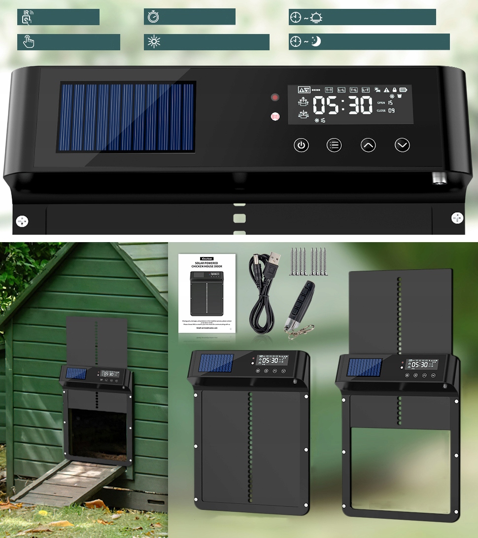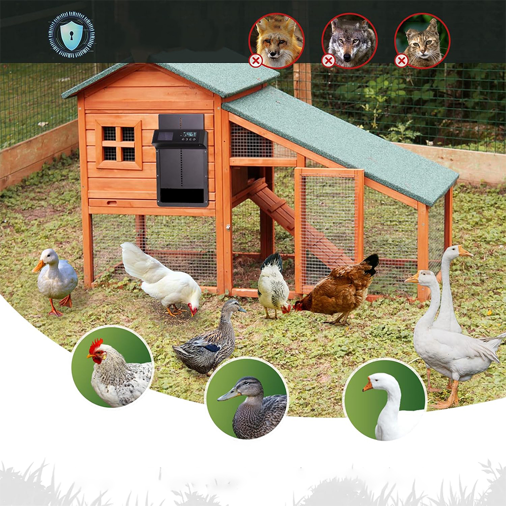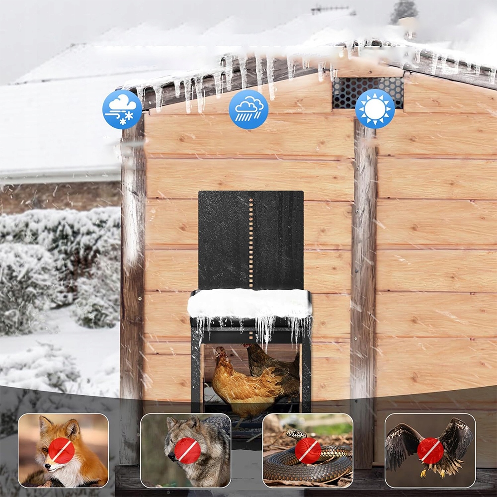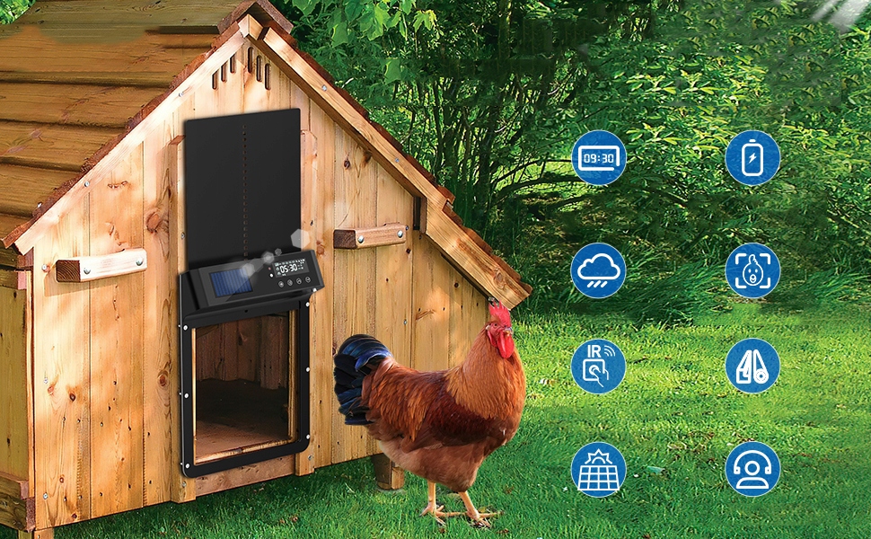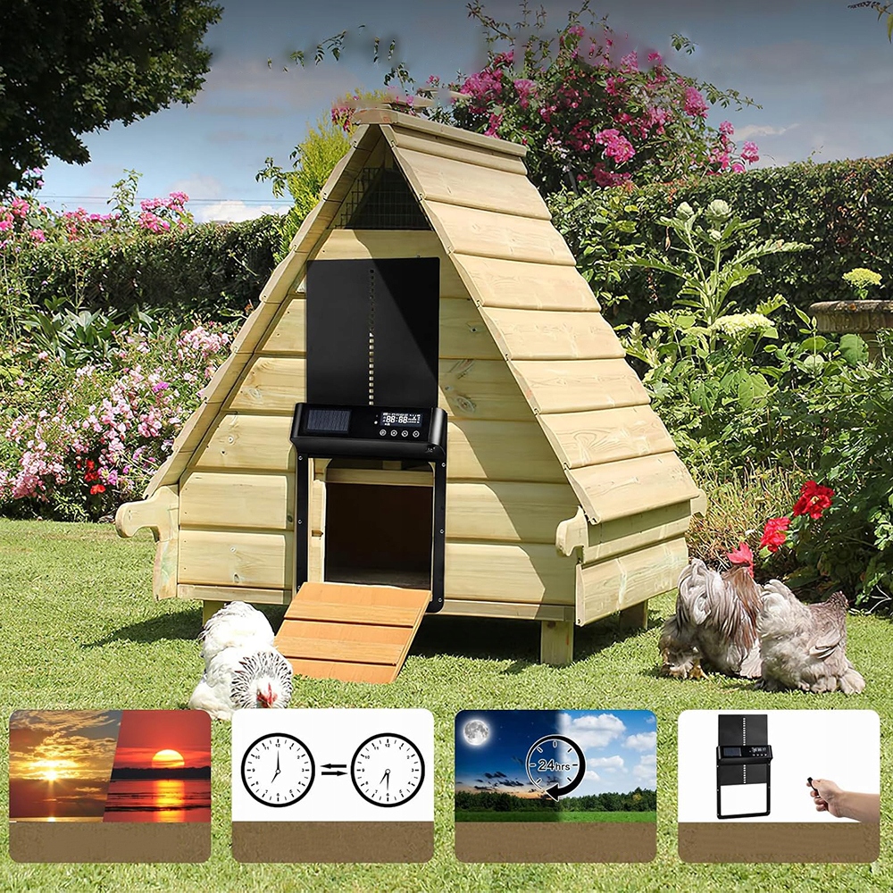 1. Економія часу та зусиль : Автоматичні двері роблять це для вас, що дозволяє отримати більшу свободу та зручність у щоденному управлінні куркою. Підвищена безпека : Автоматичні двері допомагають захистити курей від хижаків, таких як лисиці, мартени або дикі собаки, які можуть становити загрозу, особливо вночі.