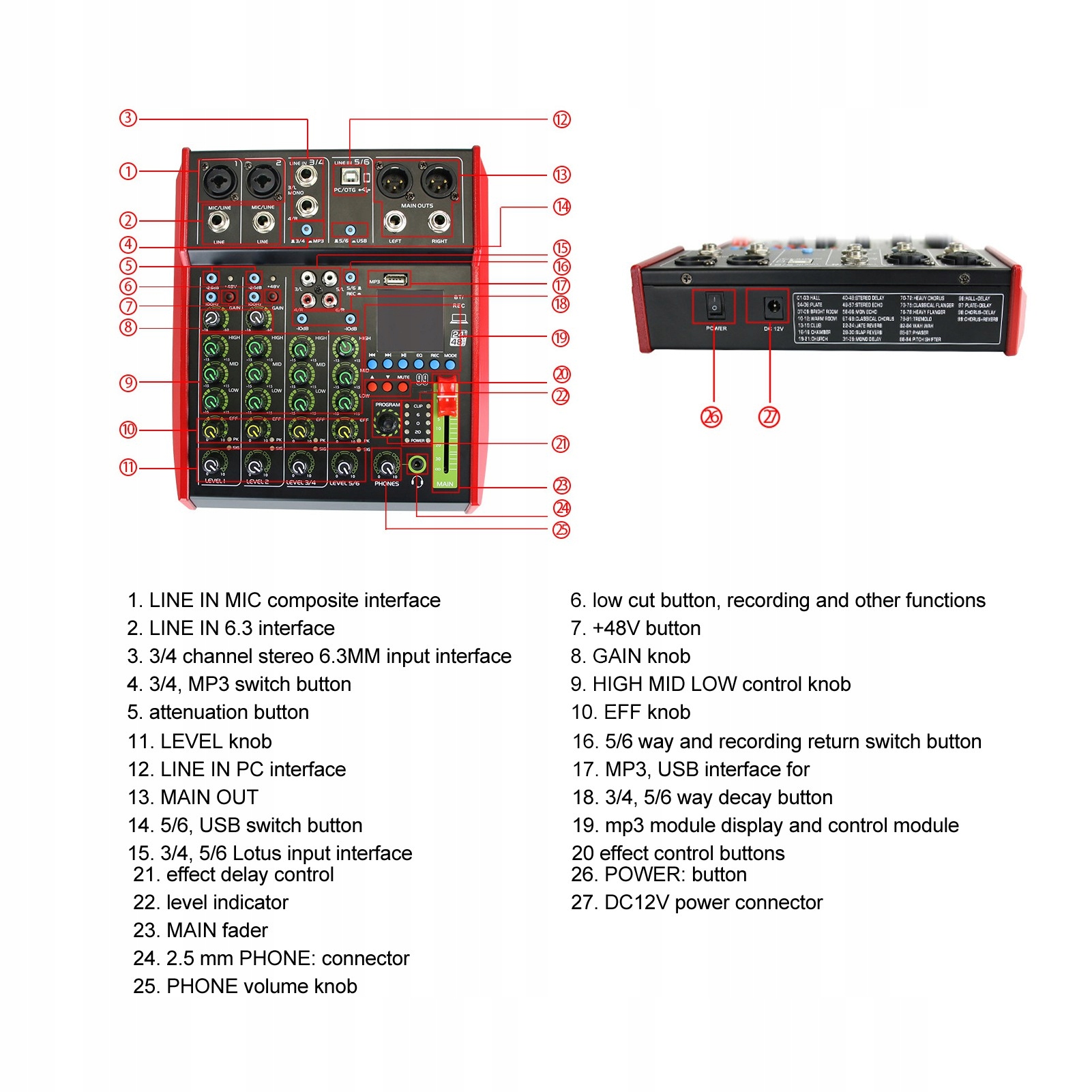 1. БАГАТОФУНКЦІОНАЛЬНІСТЬ: DJ-мікшер має якість звуку високої чіткості, багатофункціональність, запис, внутрішній запис комп’ютера, запис музики та аранжування.