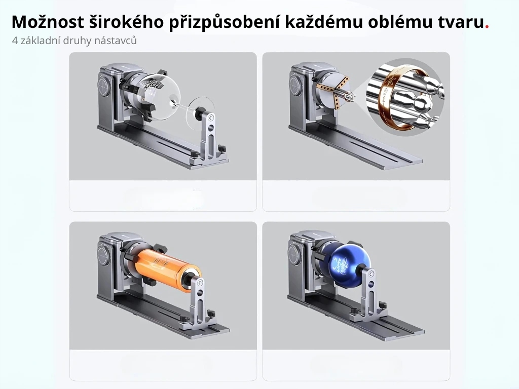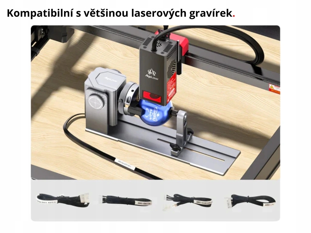 Додатковий обертовий вал, який працює як вісь, і вирішує проблему гравірувальних предметів у формі циліндра . Установка проста, і циліндр сумісний з більшістю гравюрних алголазників, а також з гравюрами інших виробників.