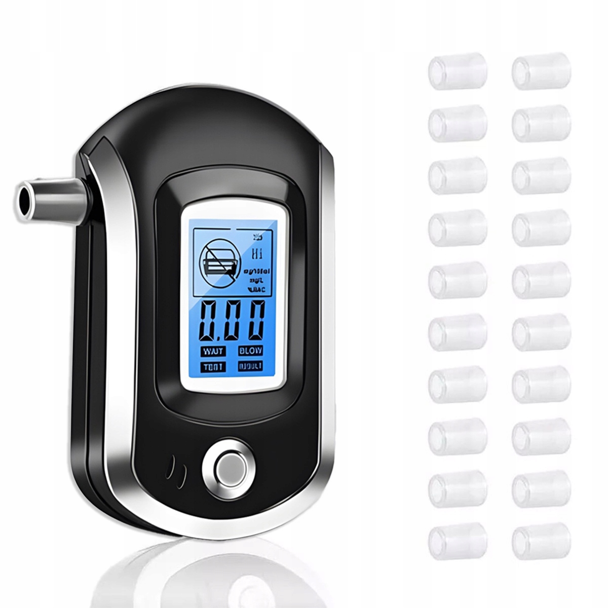 4. [Компактний і портативний] Алкотестер постачається з 20 змінними мундштуками. Їх можна чистити та використовувати повторно, що сприяє гігієні. Завдяки надзвичайно компактній конструкції алкотестер поміщається у кишені, його можна легко тримати в руці та брати з собою куди завгодно. Ідеально підходить для водіїв.