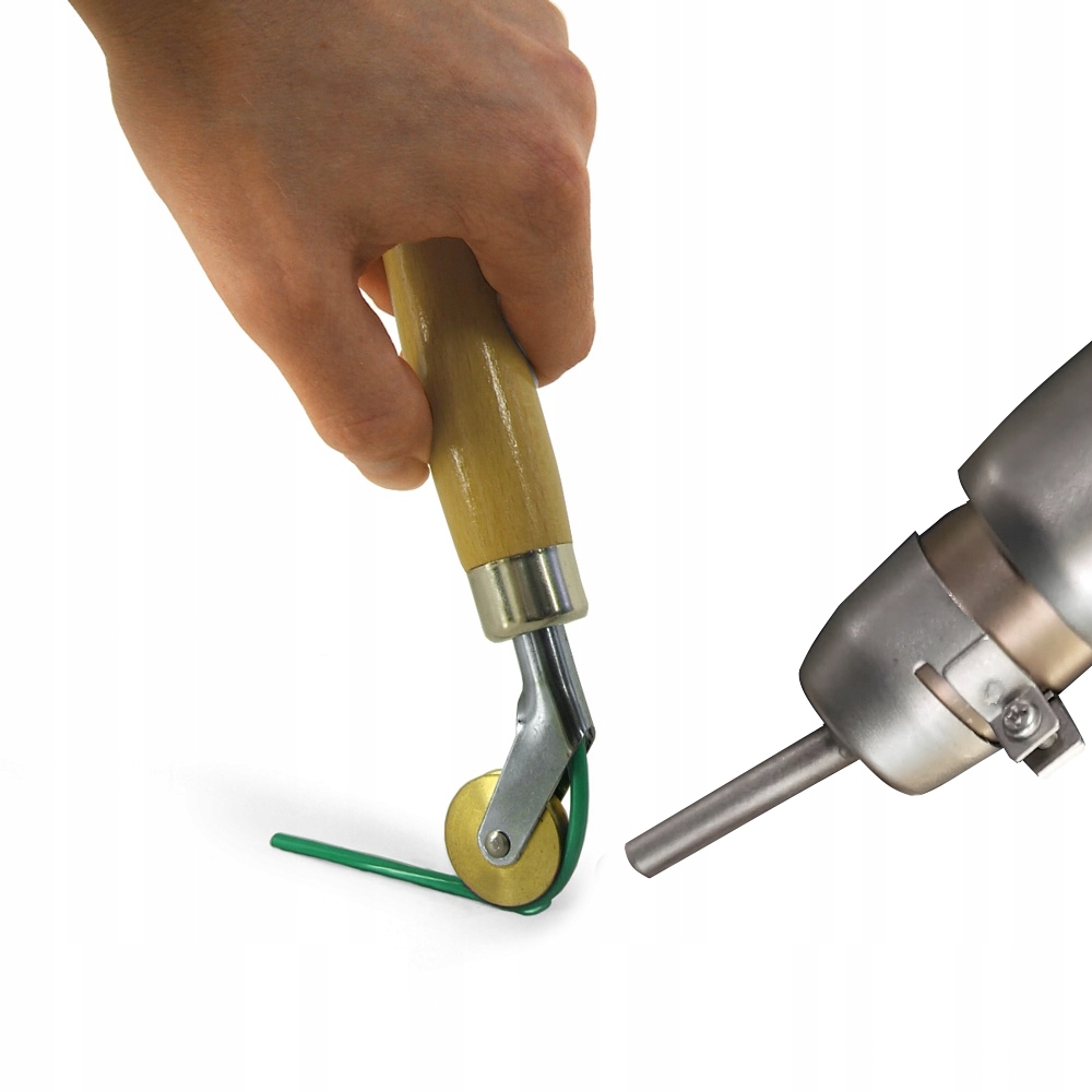 Притискно-направляючий ролик значно полегшує зварювання у важкодоступних місцях, таких як кути, вигини та складки килимового покриття на стіні. Завдяки ручному тиску ми можемо направляти мотузку більш «вільним шляхом» і зварювати підкладку в місцях, де насадка для швидкого зварювання не притискає дріт ПВХ належним чином.