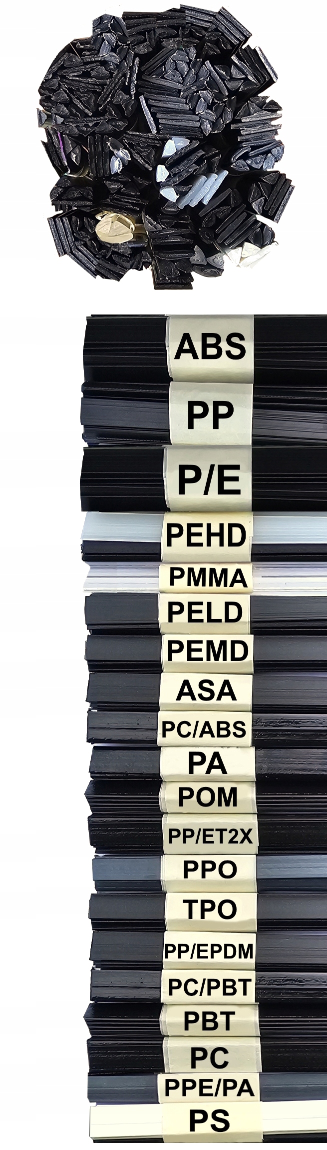 - Зварювальний присадковий метал (PP, ABS, PP/EPDM, P/E, PA, PMMA, PPE/PA, PC, TPO, PS тощо)