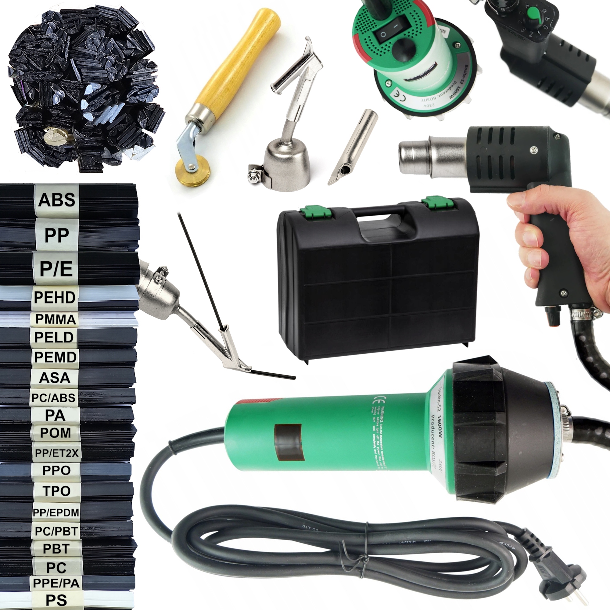 ПРОФЕСІЙНИЙ АПАРАТ ДЛЯ ЗВАРЮВАННЯ ПЛАСТИКУ ДЛЯ МАЙСТЕРНІ BOSITE S2 + BINDER 600g