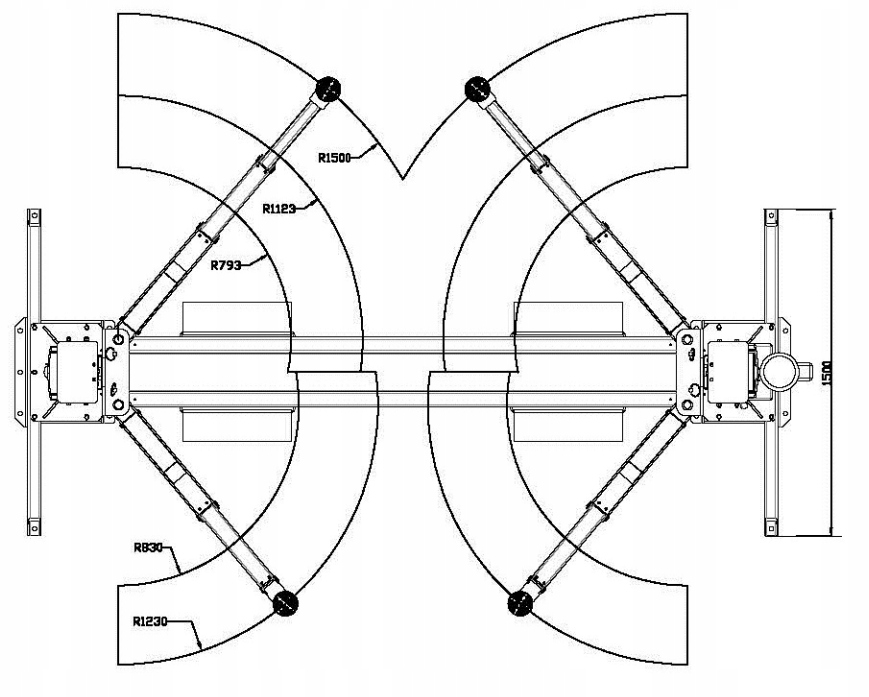 - Діапазон довжини руки: спереду 830-1230 [мм], ззаду 793-1123-1500 [мм]