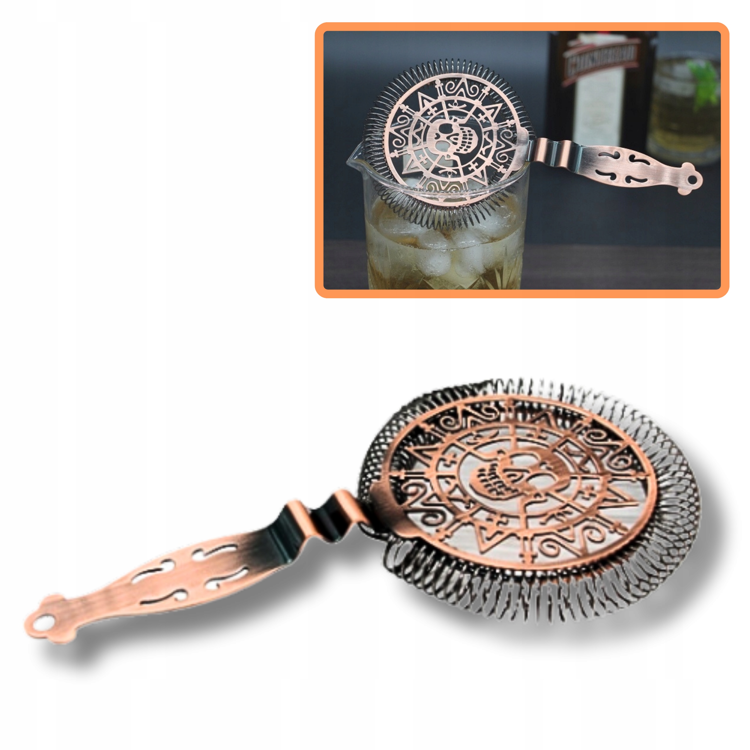 Професійний бармен. Ситечко. Фільтр. Ситечко. Ацтекський стиль. Коричневий і чорний