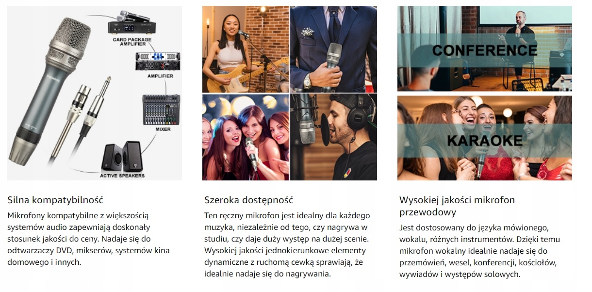 - Цей мікрофон підходить для прямих трансляцій у приміщенні, караоке для особистих записів, виступів на музичних інструментах, відеодзвінків, записів подкастів тощо можливості.