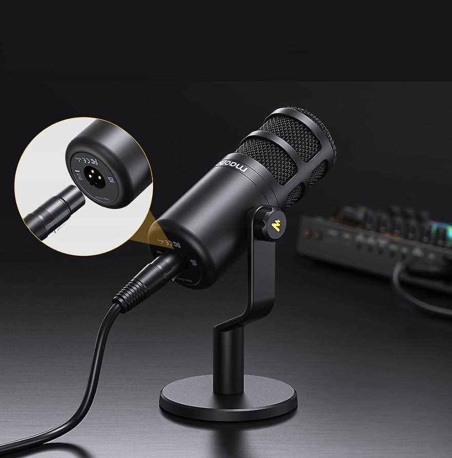 Триконтактний XLR роз'єм дозволяє підключити мікрофон, серед іншого для звукового мікшера або звукової карти з входом XLR, як-от AMC2 або Maonocaster AME2