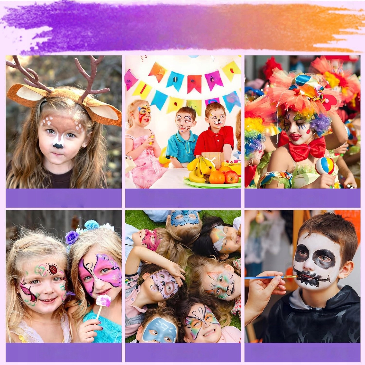 【Широкий діапазон використання】Палітра фарб для тіла підходить для дітей, вечірок з макіяжем для дорослих, фестивалів, тематичних вечірок з макіяжем, косплею, макіяжу на Хелловін, карнавалів, сценічних виступів тощо.
