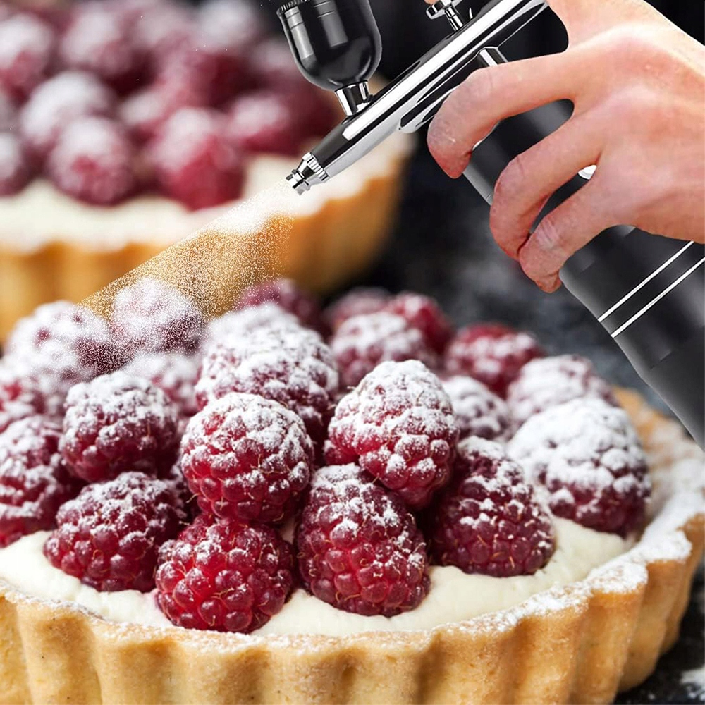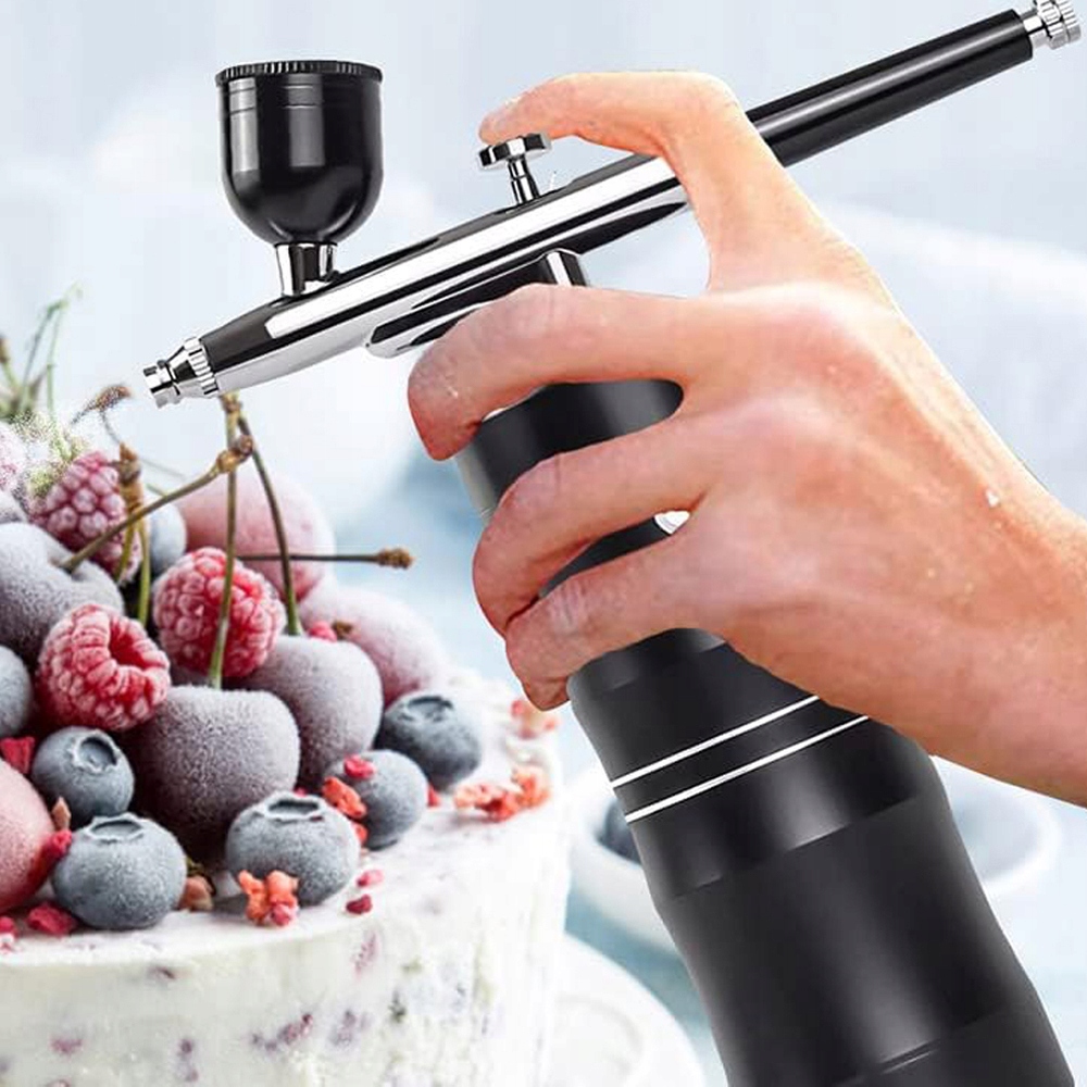 Надзвичайна точність і контроль 🎯:Регульований потік повітря та сопло 0,4 мм дозволяють створювати ніжні, детальні лінії та широке рівномірне покриття. Повний контроль над нанесенням фарби, лаку чи харчових барвників.