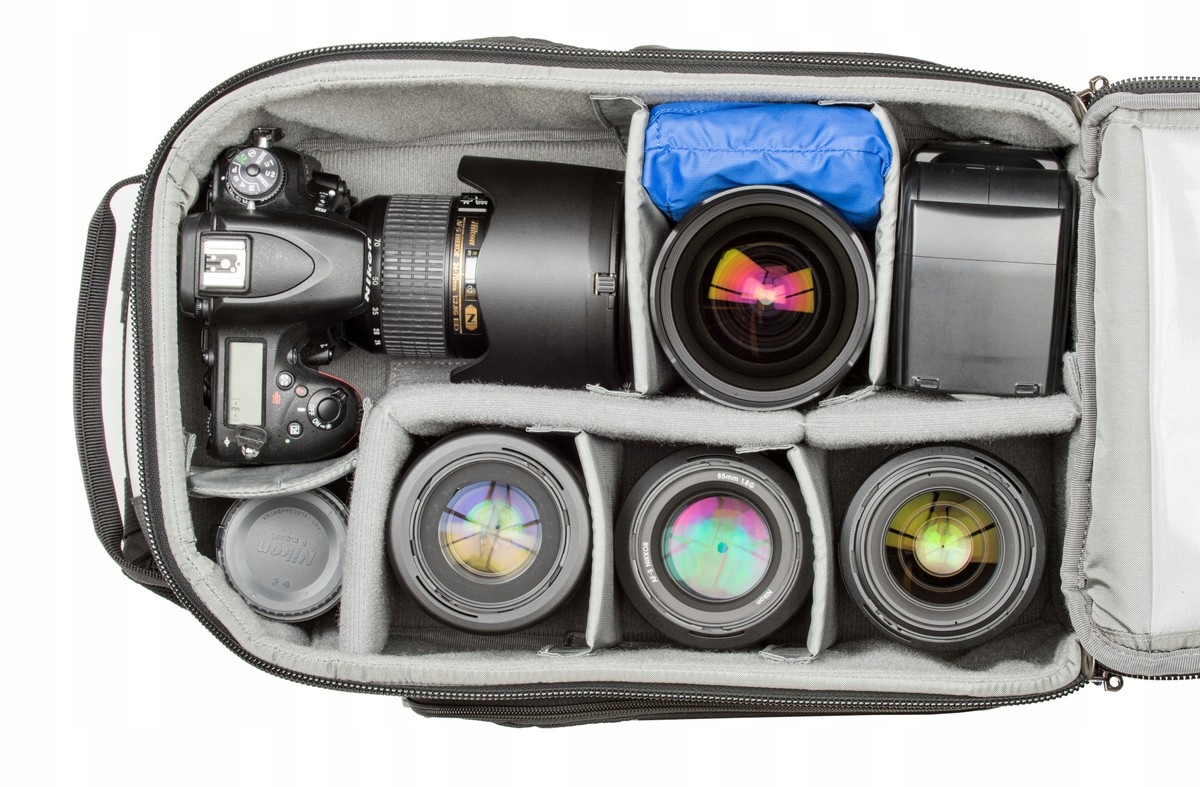 - Вміщує дві цифрові дзеркальні камери з рукояткою, 3-4 додаткові об’єктиви, спалах і 10-дюймовий планшет.
