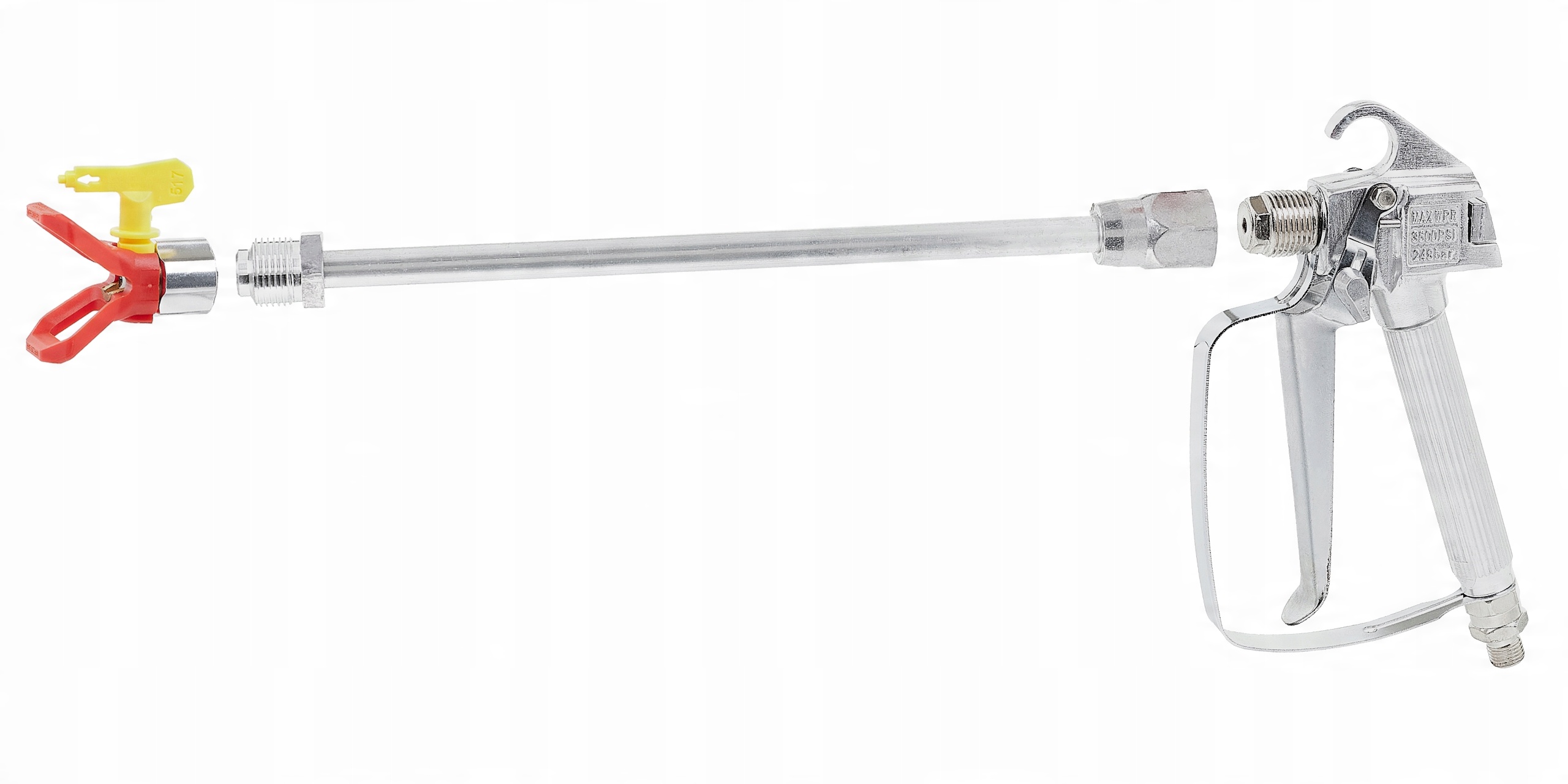 Пистолет, що входить до нашого комплекту, сумісний із широким асортиментом насадок, доступних на ринку. Завдяки цьому ви легко адаптуєте обладнання під свої потреби. У комплект входить насадка 623, яка ідеально підходить для нанесення емульсійних і латексних фарб.