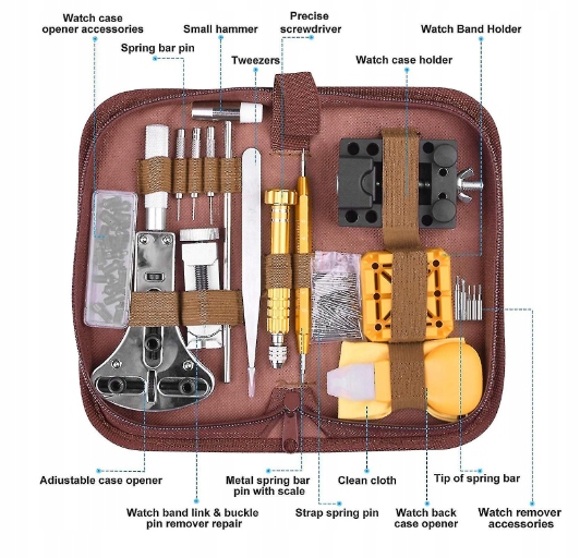 - ✅Професійний і багатофункціональний - цей набір для ремонту годинників підходить для досвідчених годинникарів і початківців, які ремонтують годинник. Ідеально підходить для відкриття задньої частини годинника, регулювання ремінця, заміни батарейок годинника, ущільнень, ремінців тощо.