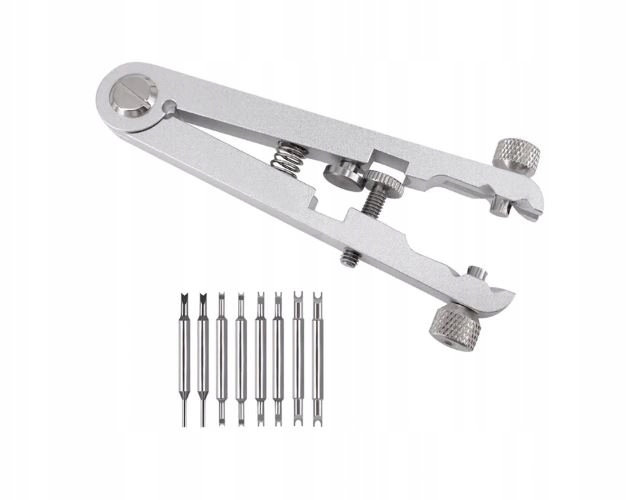 Професійний пристрій для заміни браслетів і ремінців, зручний і безпечний у використанні. Змінний кут наконечників, міцне захоплення та легкість регулювання забезпечують комфорт і безпеку браслета та футляра від подряпин.
