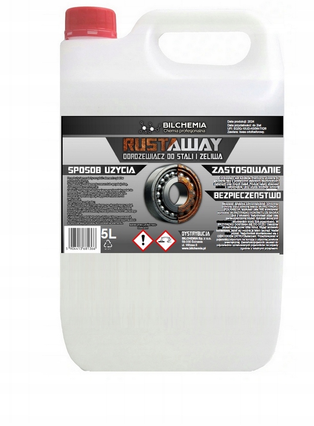 риніт до сталі та заліза є багатофункціональним агентом, заснованим на фосфорній кислоті, призначеному для боротьби з іржею на сталевих та чавунних поверхнях. Ідеально прокатка та деградує поверхню, а крім того - зберігає очищені конструкції, що запобігає перетворенню іржі тривалий час.