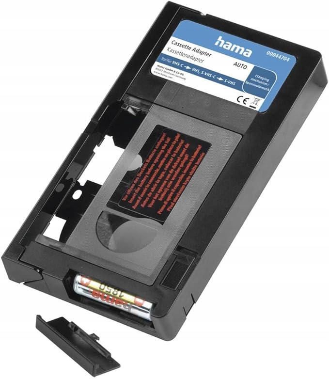 - Касетний адаптер VHS-C: автоматичний касетний адаптер для відтворення відеокасет VHS-C на програвачах VHS (повний формат)