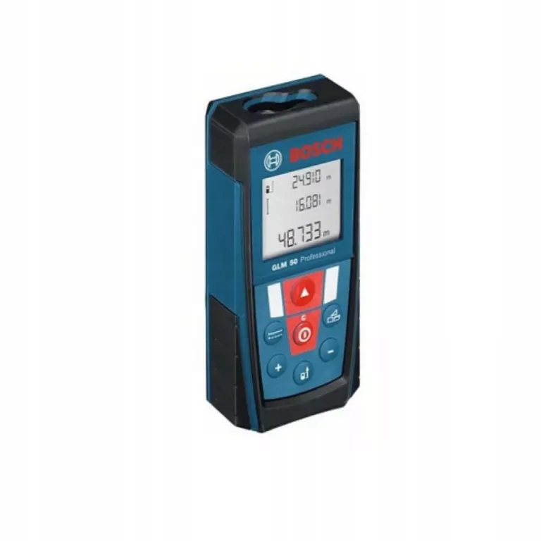 Професійний вимірювальний інструмент для будівельних робіт. Він може працювати при будь-якій температурі навколишнього середовища (-10 - 50C) і має хороший захист від пилу і вологи всередині корпусу (клас IP54). Похибка лазерного далекоміра Bosch GLM 50 в робочому діапазоні вимірювання (0,05 - 50 м) не перевищує 1,5 мм. Прилад має три орієнтири (передній і задній кінці корпусу і центр отвору штатива). Пристрій може складати, віднімати і множити отримані результати вимірювань, а також використовувати теорему Піфагора. Для відображення інформації використовується чорно-білий дисплей (без підсвічування). Комплект із двох батарейок типу ААА, які входять у комплект приладу разом із футляром, дозволяє виконувати до 10 000 вимірювань.