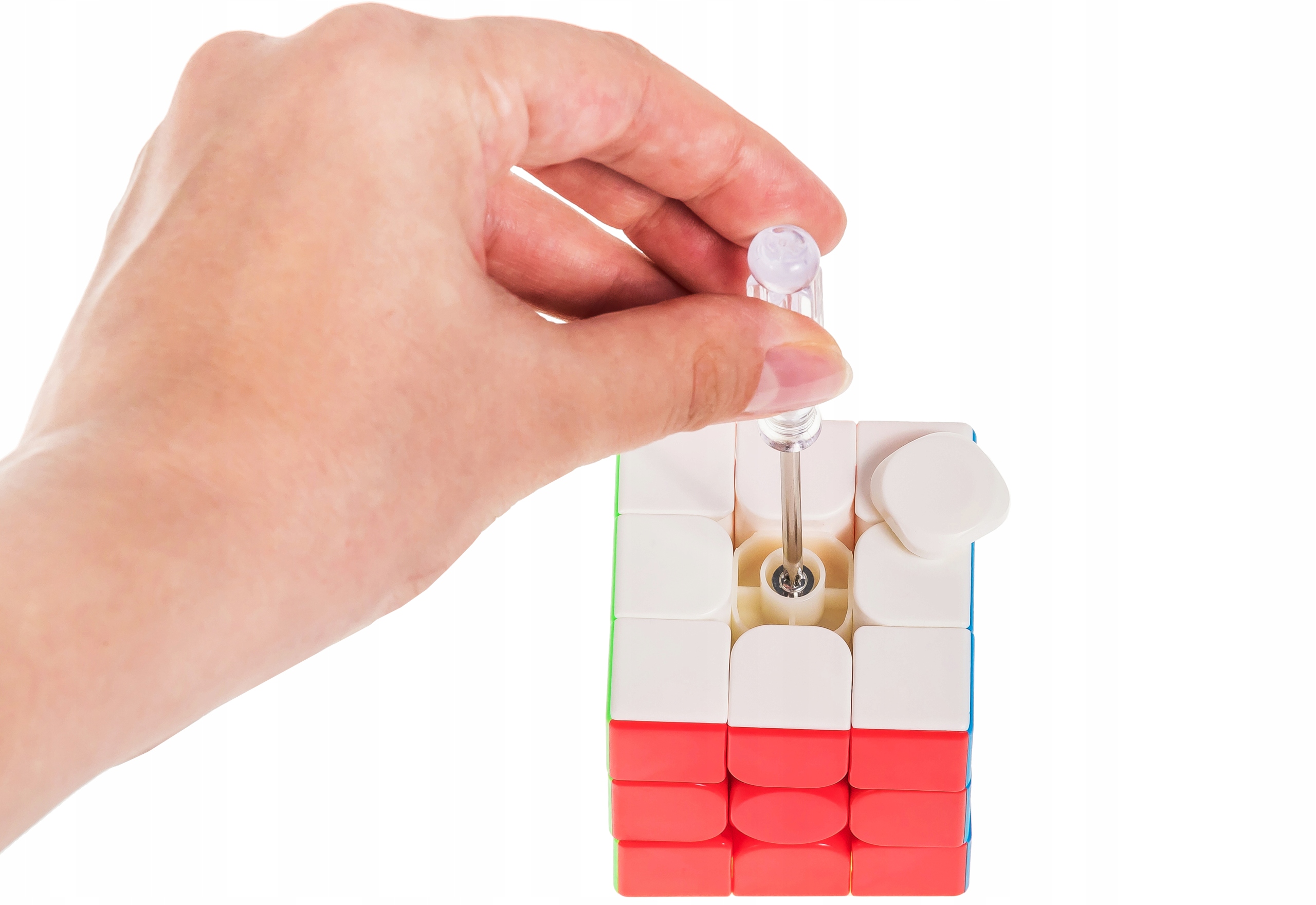 Якщо куб подряпаний після тривалого використання, його поля не втратять свій колір або не буде видно інший колір пластику після протирання полів, тому що кожен пластиковий елемент одного кольору! Куб не має пофарбованих полів, але складається з повнокольорових елементів!