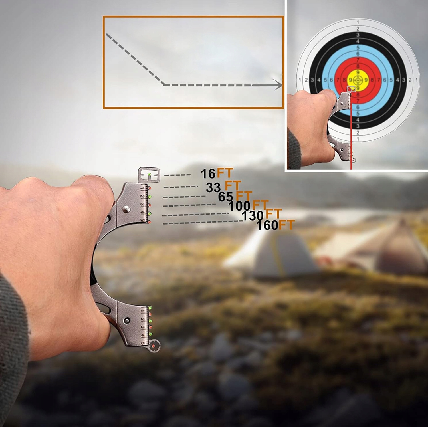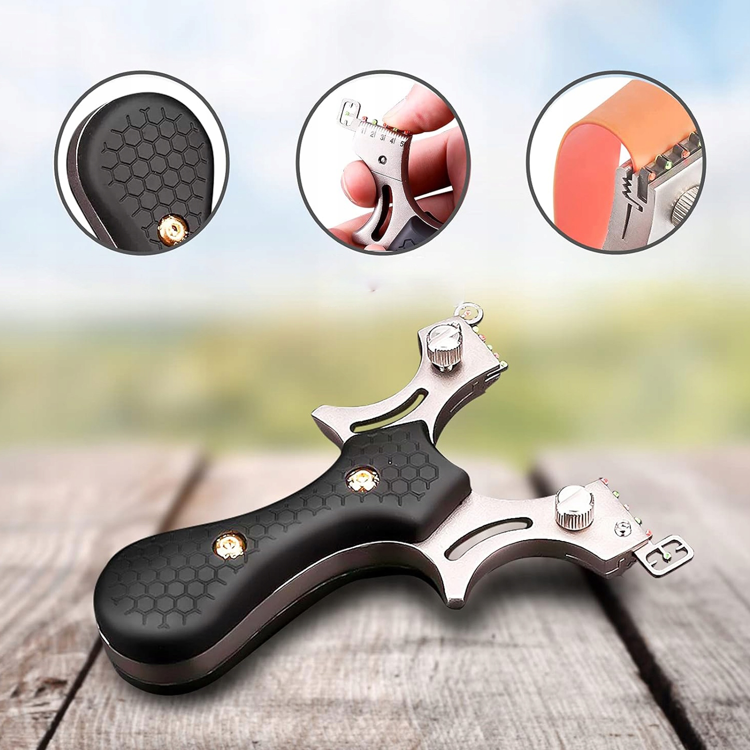 - 💪putition Тактична рогатка: Сильні запасні смуги різної товщини кріпиться до рогату. Приціли з нержавіючої сталі допомагають любителям та початківцям практикувати та цілі цілі. Повна зйомка в різних сценах. 4