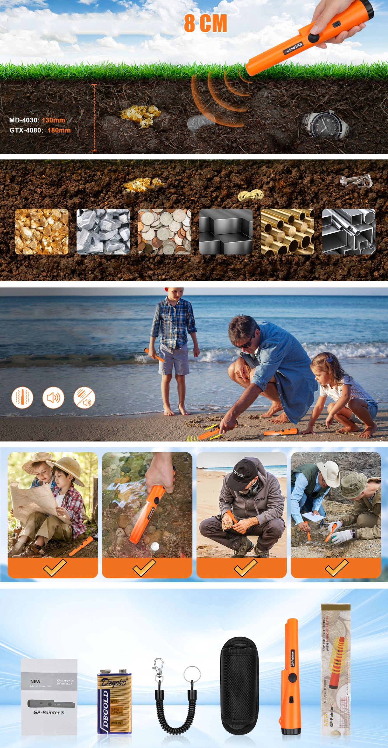 🌟Завдяки діапазону виявлення 3,5-8 см пристрій може знаходити монети, срібні монети, коштовності, золото тощо в різних умовах: у приміщенні, на вулиці, біля стіни, у піску, траві чи ґрунт.