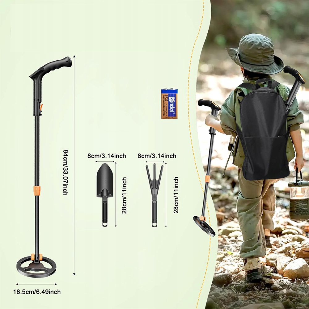 Ви отримаєте більше одного світлого металошукач для дітей, а набір також включає лопату та граблі. Це не лише чудовий вибір для подорожей, свят, кемпінгів та поїздок, але й чудовий подарунок на день народження чи різдвяний подарунок. А наш металошукач виготовлений із безпечного пластику ABS. Нехай ваша дитина насолоджується грою в пошуках скарбів на свіжому повітрі завдяки нашому водонепроникному металошукач для дітей.