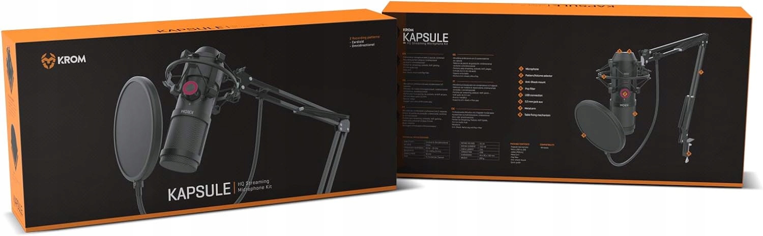 Капсула KROM - це подвійний HD ємнісний мікрофон з якістю студії з ударним кріпленням та поп -фільтром, який дає все необхідне для досягнення найкращого звуку під час потокових, подкастів, розмов або музичних записів.