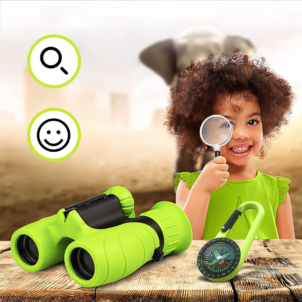 Цей захоплюючий бінокль постачається зі справжнім компасом і збільшувальним склом, щоб спонукати маленьких дітей до пригод. У набір входить практична сумка для зберігання та серветка з мікрофібри для чищення окулярів.