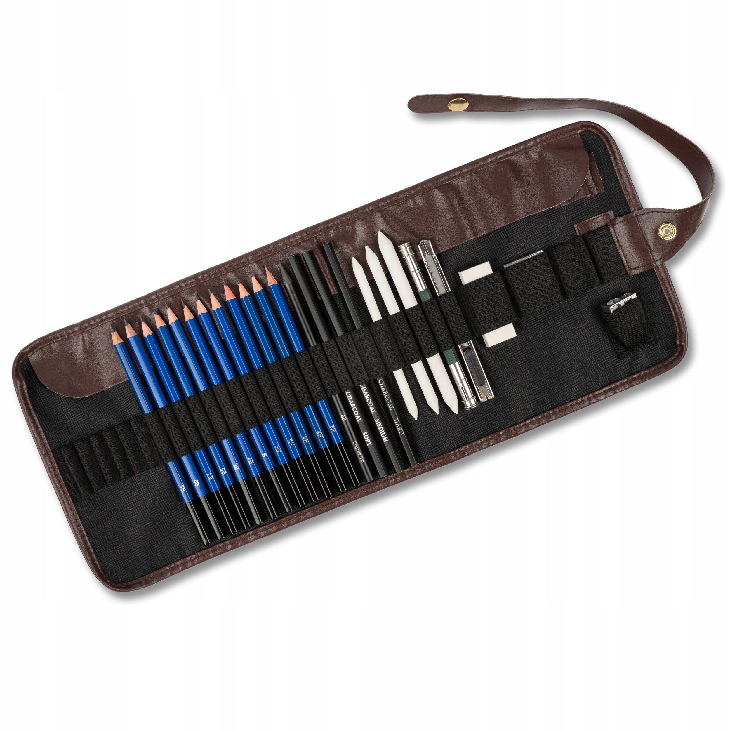 ✔️ Корисні аксесуари, такі як ластик, точилка, ніж і стильний чохол дозволять вам зручно малювати будь-де.