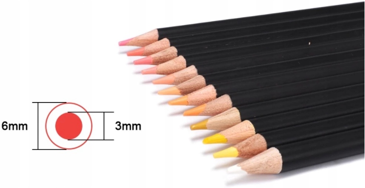 Олівці - дванадцять різних ступенів твердості від 5H (найтвердіший) до 8B (найм’якший). Тверді олівці призначені насамперед для створення точних ліній, наприклад, технічних малюнків, тоді як м’які олівці ідеально підходять для художніх малюнків.
