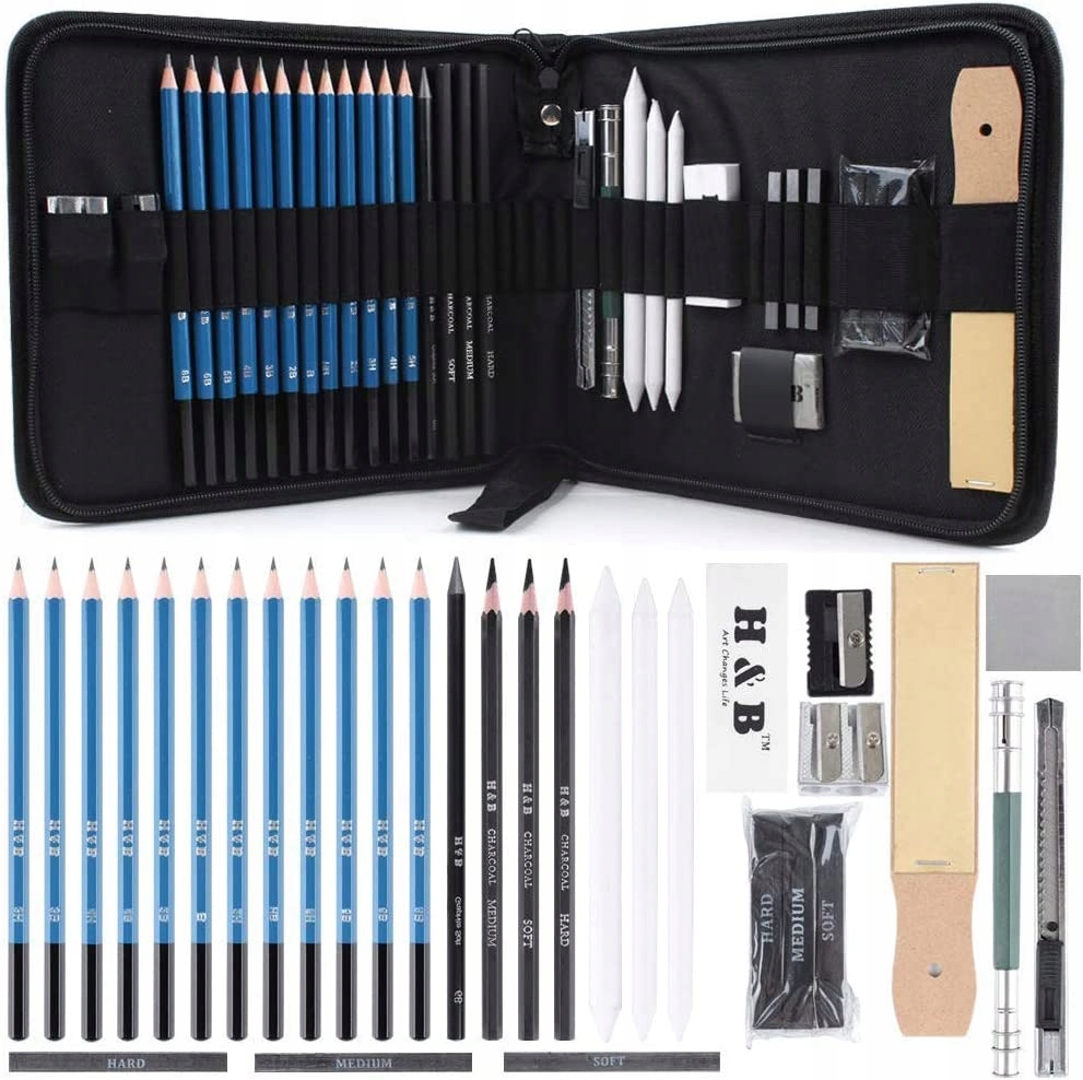 Олівці для малювання з набором для ескізів, набір для професійного малювання з 33 предметів, графітні олівці, гумки.
